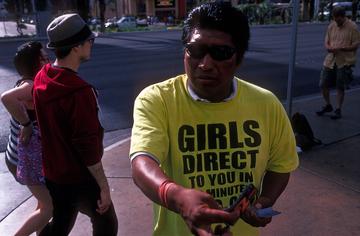 The authorities have tried to stop the porn slappers (they call themselves “card workers,” or tarjeteros) but the 9th Circuit Court struck down the ban on First Amendment grounds, so we’re stuck with them for a while. Apparently the slappers make less than minimum wage, and many are illegal immigrants.